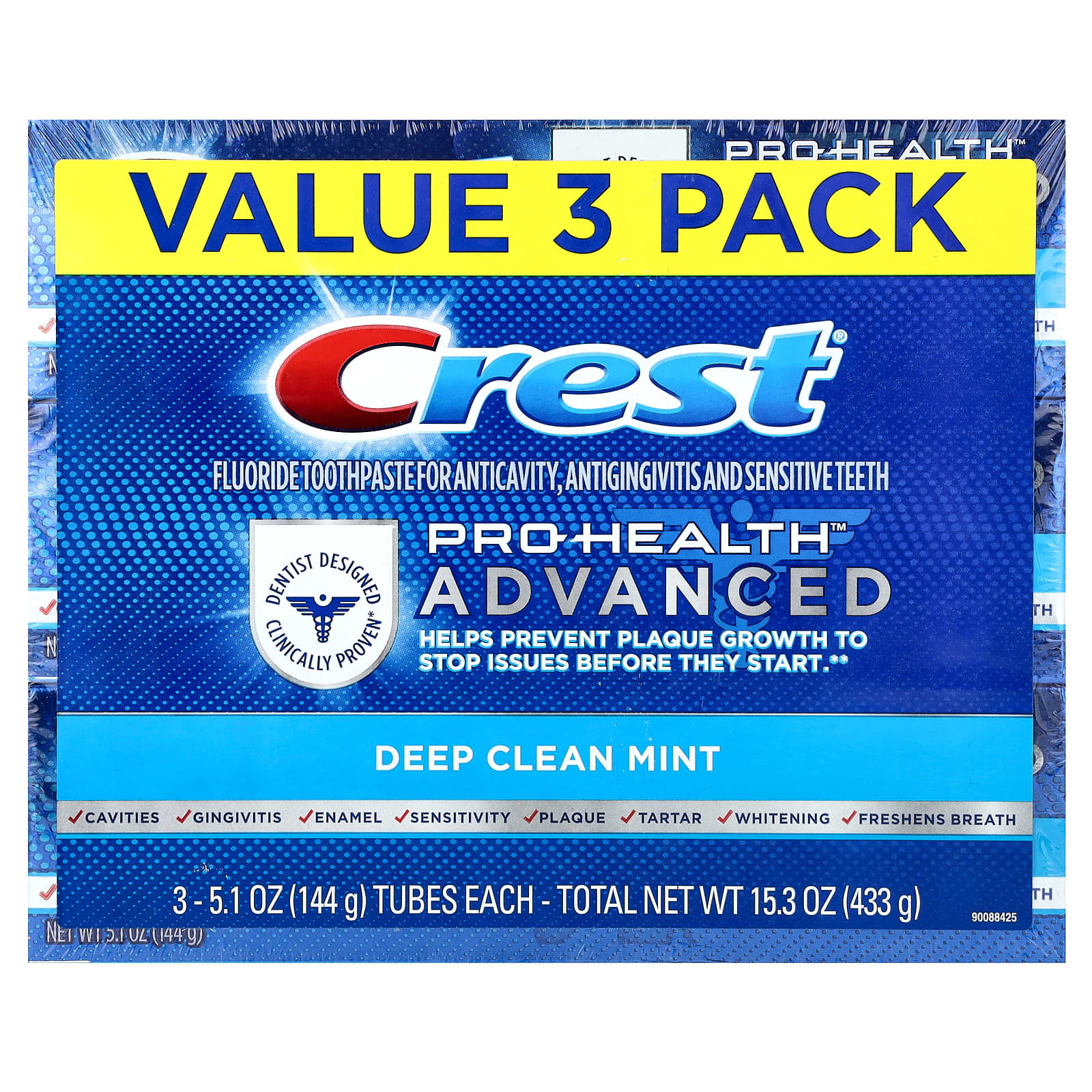 Crest, Pro-Health Advanced, Fluoride Toothpaste, Deep Clean Mint, 3 Pack, 5.1 oz (144 g) Each