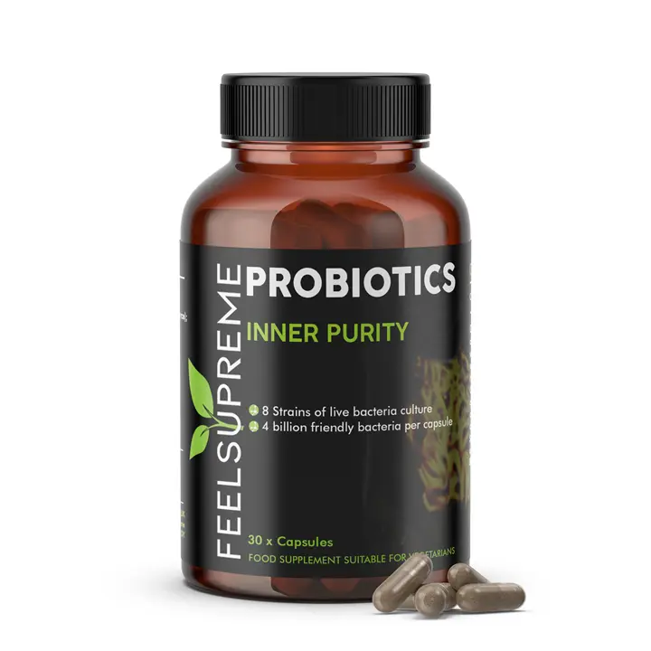 30 Capsules | 1 Month Supply8 strains of bacteria | 4 billion culture | Made in the UK?Our probiotic formula is a?high-strength, multi-strain probiotic supplement with 4 billion friendly bacteria per capsule.It provides 8 strains of friendly lactic bacteria which should inhabit a healthy gut, and offers full- spectrum support of the upper and lower bowel.Micro-encapsulated for?acid resistance, this?probiotic contains human?compatible friendly bacteria?strains which are bile and?acid tolerant with high?adherence ability ? no need?to refrigerate and?guaranteed to provide 4?billion live bacteria per capsule for up to 12 months.BloatingFlatulenceDigestion?Extra Reading:?Probiotics: a complete guideIs Your Gut Healthy??Dosage: 1 capsule per day with food?Cultures:Lactobacillus caseiLactobacillus rhamnosusStreptococcus thermophilusLactobacillus acidophilusBifidobacterium breveBifidobacterium longumBifidobacterium infantisLactobacillus bulgaricus