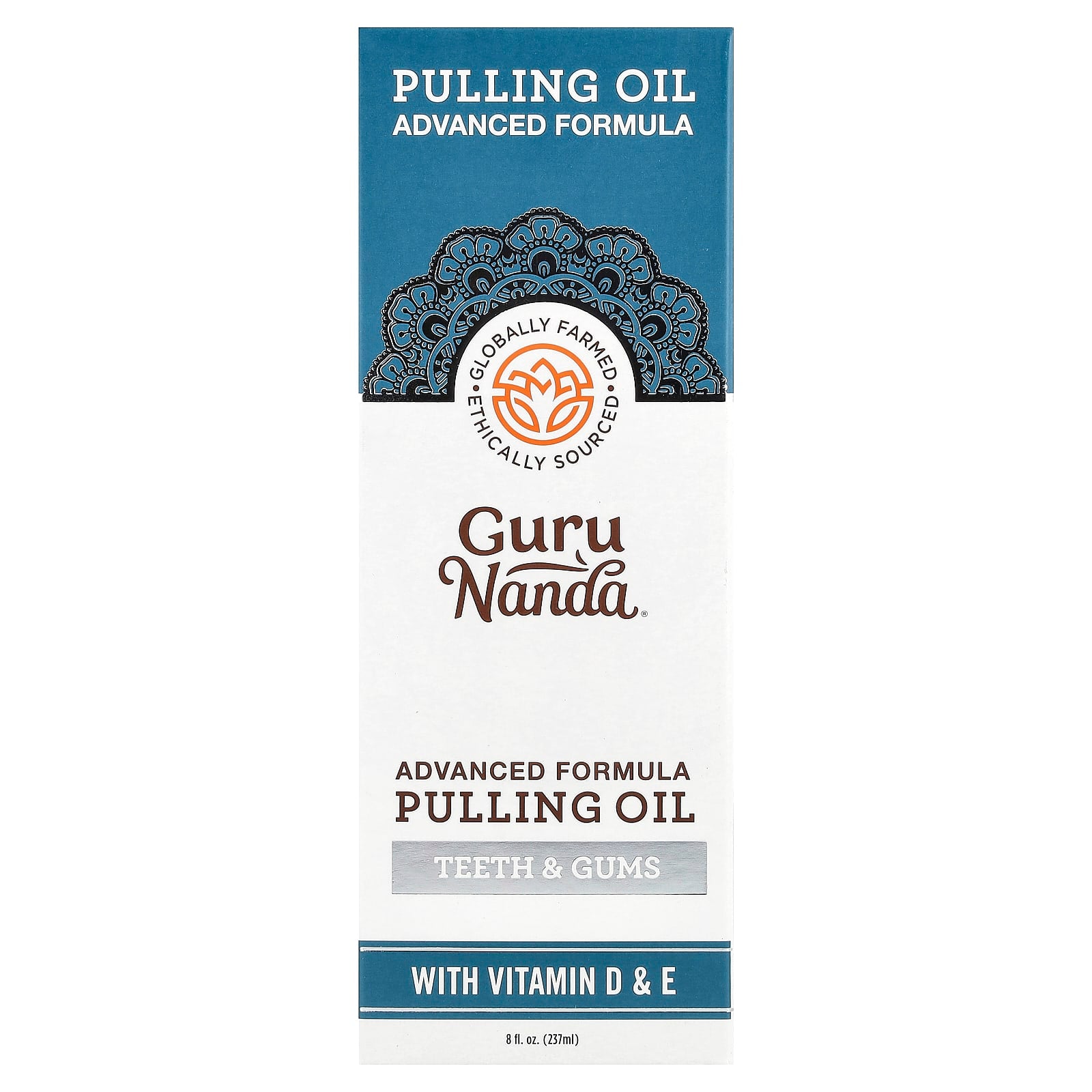 Shake well. Place one tablespoon of Guru Nanda® Advanced Formula Pulling Oil in mouth. Gently swish the oil between your teeth for at least 2 minutes. Try to work up to 10 minutes per use. Spit the oil out. Do not swallow. Rinse mouth thoroughly with water. Always brush your teeth after using Advanced Formula Pulling Oil.