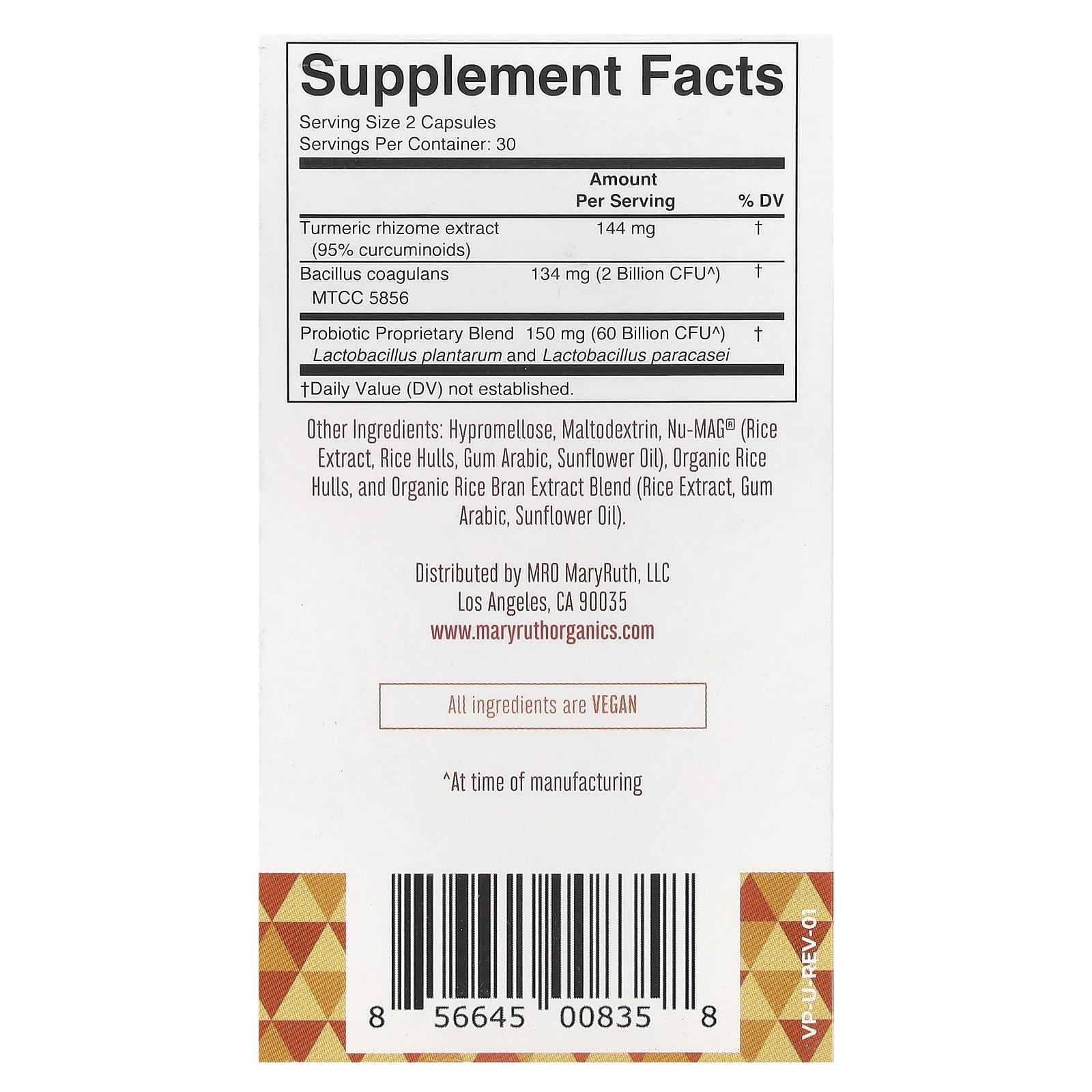 MaryRuth's, Probiotic Turmeric +, 62 Billion CFU, 60 Capsules (31 Billion CFU per Capsule)