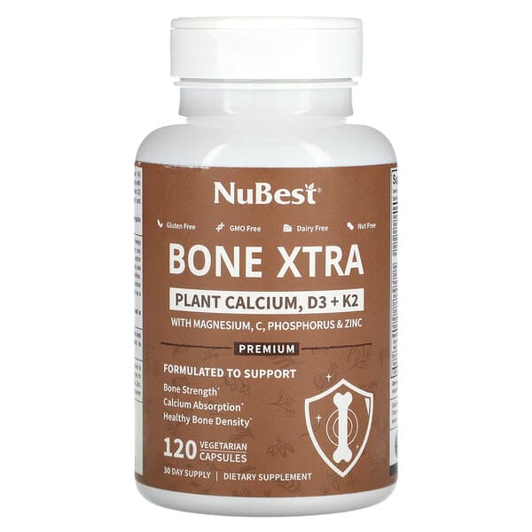NuBest, Bone Xtra, Plant Calcium, D3 + K2, 120 Vegetarian Capsules