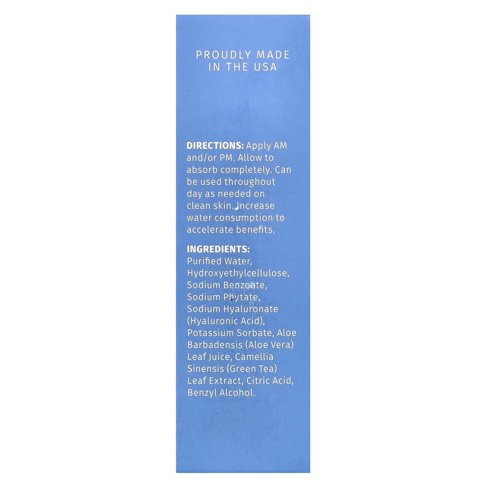Purified water, hydroxyethylcellulose, sodium benzoate, sodium phytate, sodium hyaluronate (hyaluronic acid), potassium sorbate, aloe barbadensis (aloe vera) leaf juice, camellia sinensis (green tea) leaf extract, citric acid, benzyl alcohol.