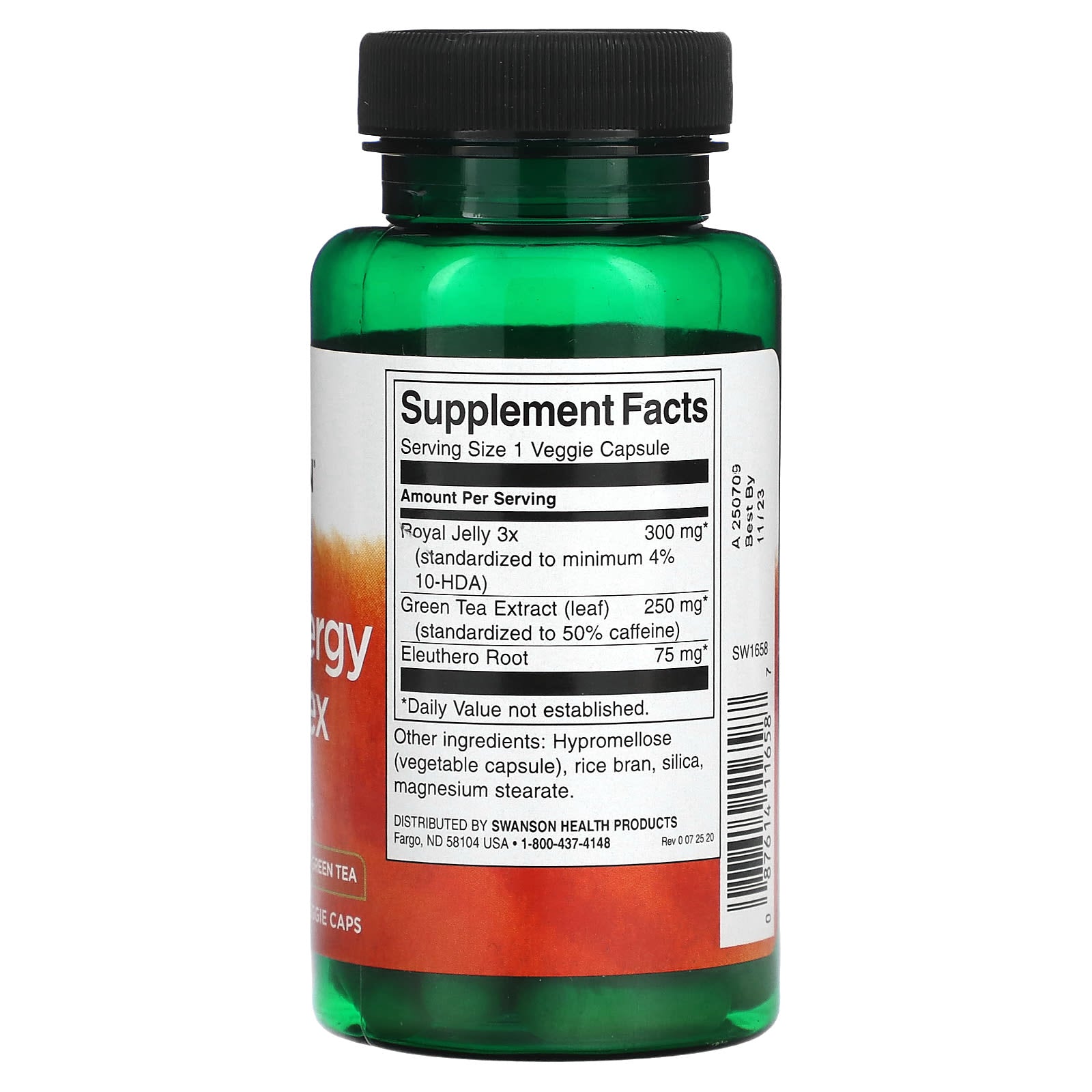 When you need a little extra energy to get you through the day, reach for Swanson Premium Brand Jelly Energy Complex. Formulated to enhance mental and physical energy, Royal Energy Complex combines three powerful ingredients that help keep you going strong under even the most demanding circumstances. We started with royal jelly, a super-nutritious energy source produced by honeybees. Next we added a highly concentrated green tea extract with an impressive 50% caffeine content. To round out the formula, we added eleuthero root, a Siberian herb with a worldwide reputation as an energizing tonic for fighting mental and physical stress. Combined they make Royal Jelly Energy Complex the perfect energy source to help you tackle your most stressful days.